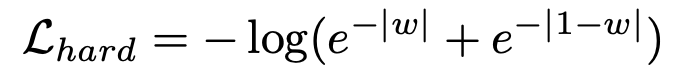 아래 loss는 canonical human을 구할 때 0 혹은 1의 값만 갖도록 하여 human 주변이 일렁이는 것처럼 보이지 않도록 하는 loss입니다. w는 투명도를 나타냅니다.