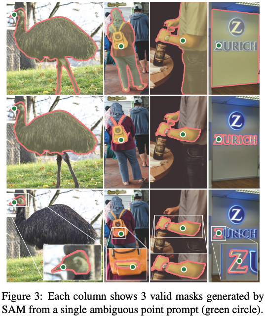 또한 prompt가 모호하더라도 충분히 합리적인 결과 값을 내놓아야합니다. 모호한 prompt의 예시로, 경우는 흰 셔츠를 입고있는 남성의 이미지가 있다고 가정해보겠습니다. 사용자가 흰 셔츠에 점을 찍고 segmentation을 해달라고 하면 셔츠만 segmentation을 해달라는 것일 수도 있고 사람 전체를 segmentation 해달라는 의미일 수도 있는데 "셔츠+사람의 일부"만 segmentation하는 식으로 애매한 결과가 나오지 않도록 하는게 목표였습니다.